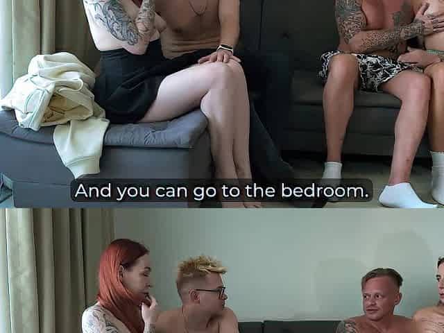 1st Time Swingers Exchange Wives for Wild Hotel Daybed Share Bang Untill Jizz flow