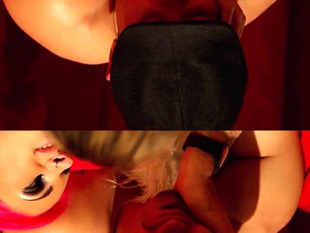 Girl helps couple out at a swinger club
