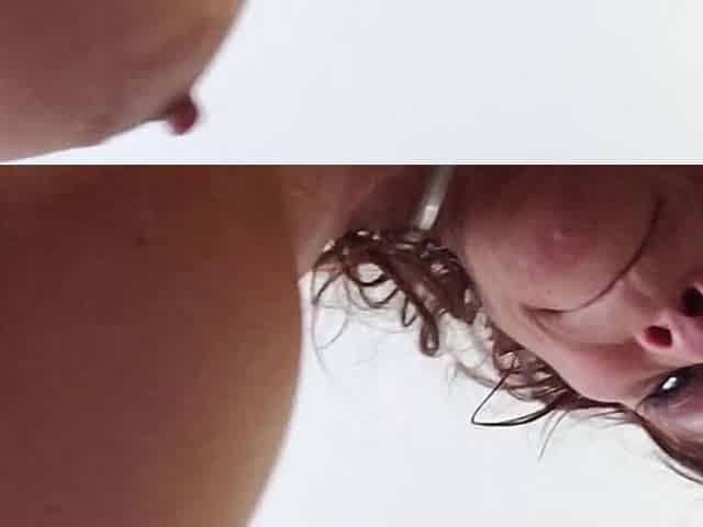 Huge titted brunette milf licks dick