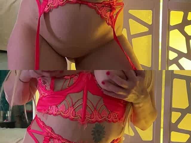 Sexy orange pink lingerie striptease and masturbation