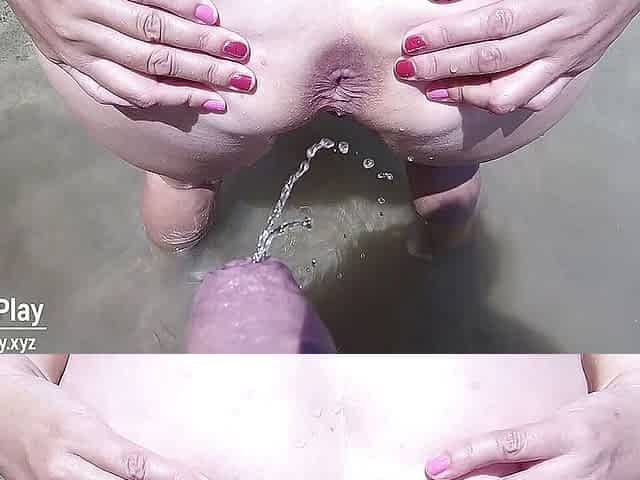 Stepson peeing in ass hole stepmom outdoor
