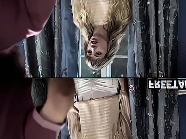 Awesome blonde stepmother doing her household chores but she is nasty