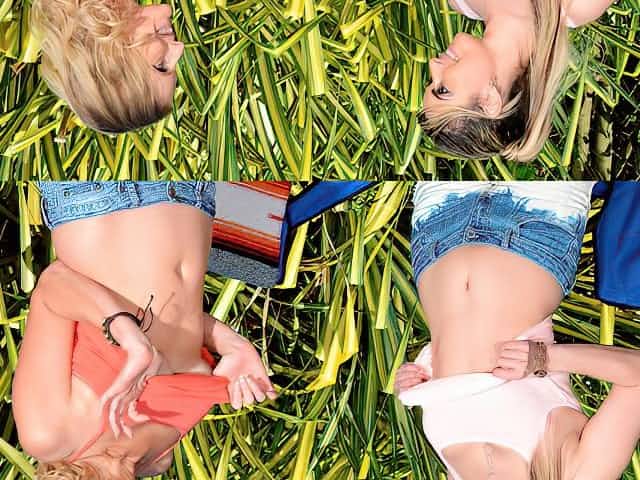 Two hot horny teens are having fun while their boyfriends are talking.