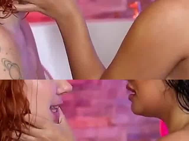 Busty blonde Milf and petite tall brunette teen having hot lesbian sex in the bath tub