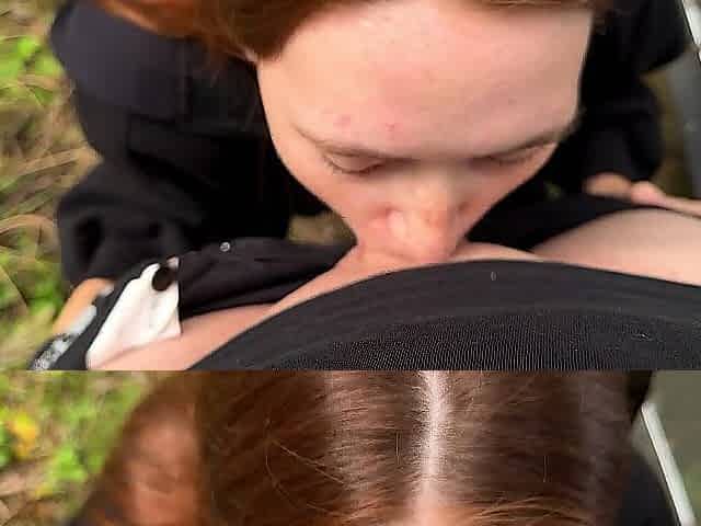 Redhead gets a facial after a hot doggy style sex