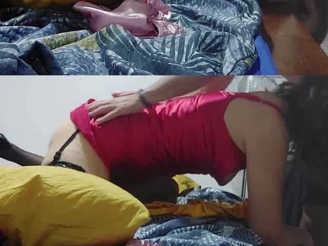 845 (01) - Clothed in Red/black Satin Dress, Many Satin Tanga, White Slut, Doggystyle, POV, Deepthroat, Licking Ass Hole