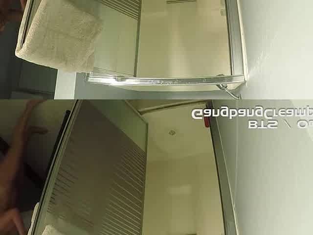 Bathroomspy tanlines, shaved pussy
