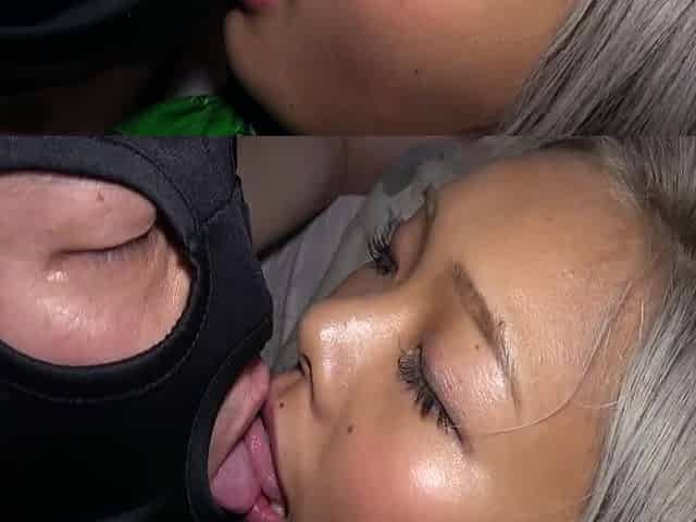 Pale blonde and tanned brunette lesbians toying and licking