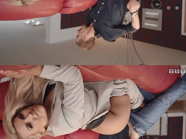 Beautiful blonde gets a doggy style fuck with her porn director.