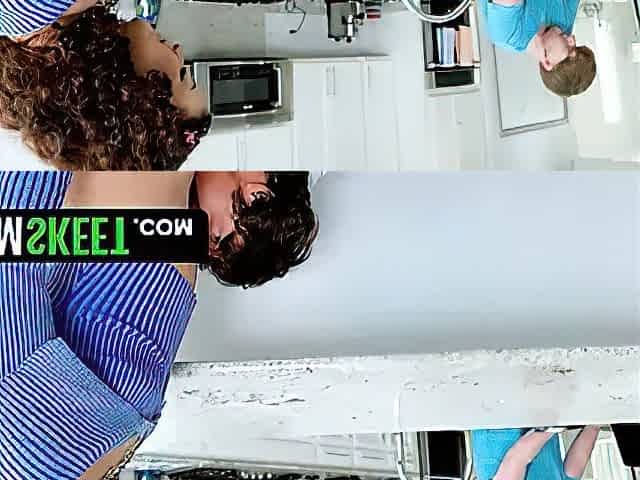 Hot and crazy three-way in the kitchen with Naty Delgado, Salome Gil, and her cheating boypartner! Big boobs, meaty ass Latina,