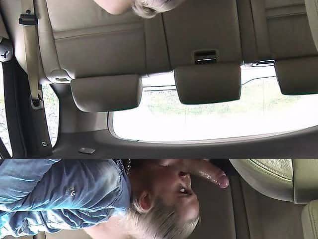 Blonde MILF deep throats in fake taxi