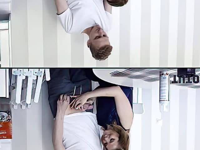Slim brunette girl pounded from behind by an older man at his office