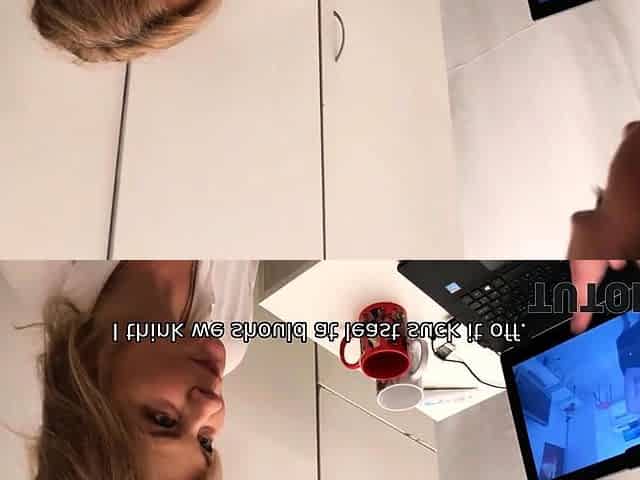 Blonde Britney Amber is sucking hard hose which belongs to her boss