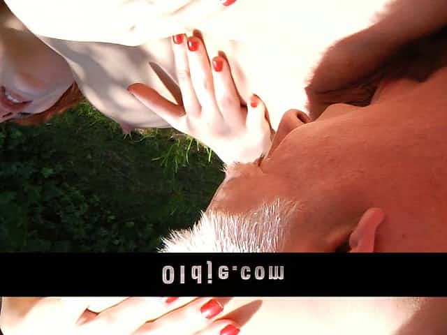 Red-haired college student fucks with her old teacher outside