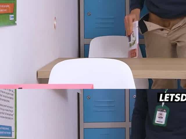 Math trainer seduces his shy student below the table. Caught