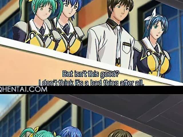 Excited hentai teacher in huge tits rides students dick in