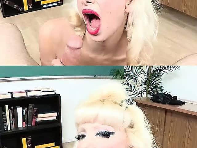 Hot blonde teacher dildos her student