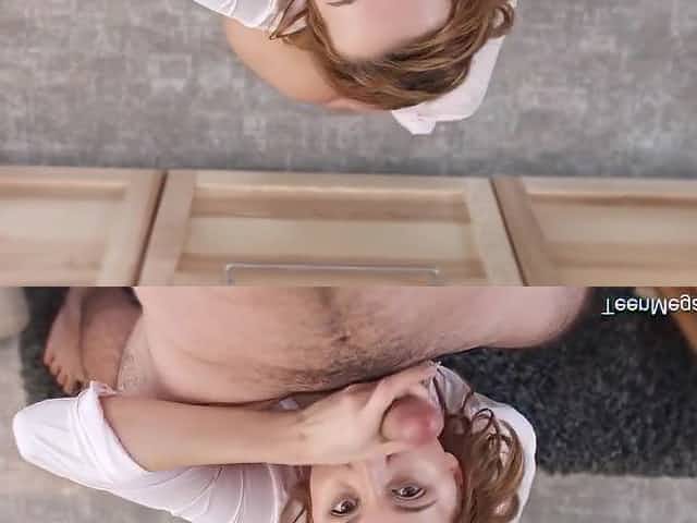 Teen stepsister fingers her pussy for reluctant stepbrother