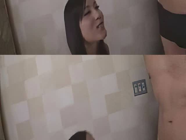 Shy Japanese legal age teenager giving head on camera - two