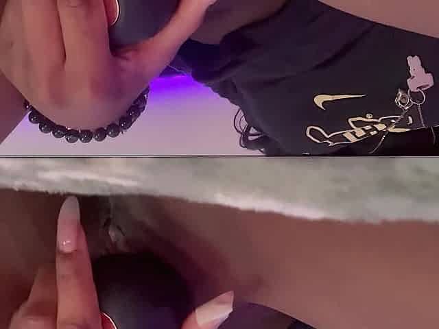 Watching porn and Pounding my Creamy Pussy on the Nightstand