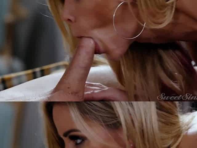 Senusal vaginal and anal sex in the bed with blonde Sabrina White