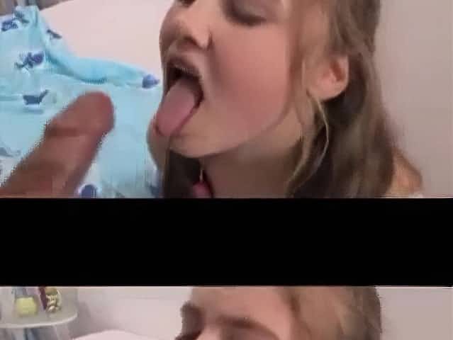 Blonde teen spreads her legs and gets cum in mouth after deepthroat