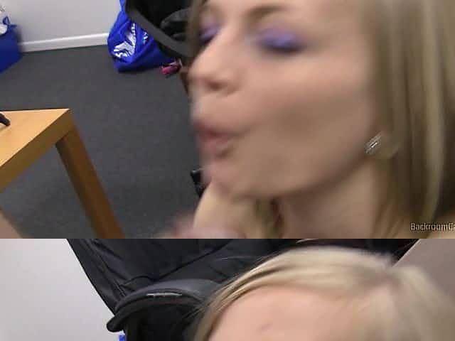 Blonde babe gets spunk shower in casting
