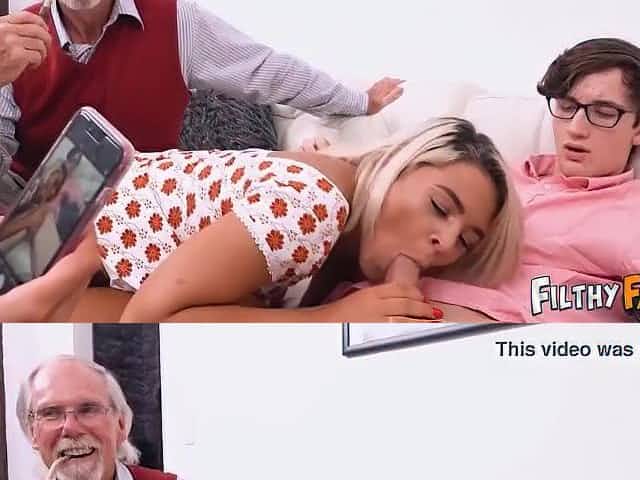 Teen slut in threeway with elderly pair