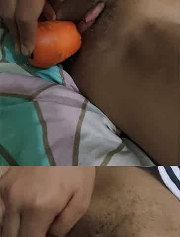 Barely legal teen bunny girl touching herself with a carrot in his tight pussy