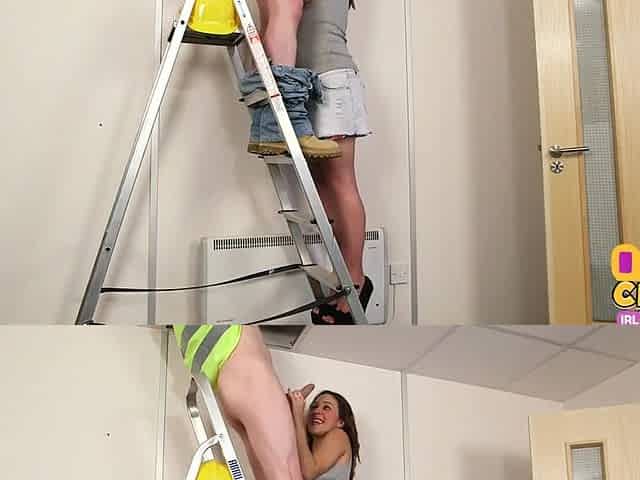 CFNM amateur teen on ladders sucks and jerks repairman dick