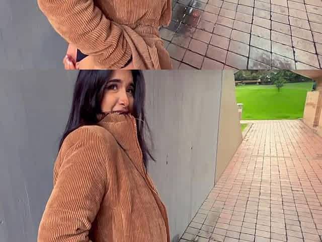 Wild college girl can't resist and gives a street blowjob
