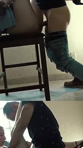 Stepbro's jism still cascading out as he humps me again -