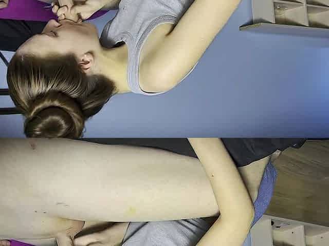 Kinky teen threesome fucked in both her tiny holes