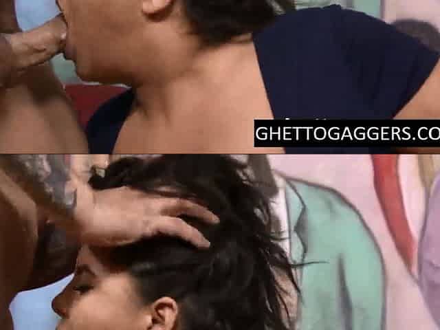 Chubby teen gets a ruthless throat fuck & Double Penetration. Bootleg and Gio destroy this chubby ebony teen big time as they tu