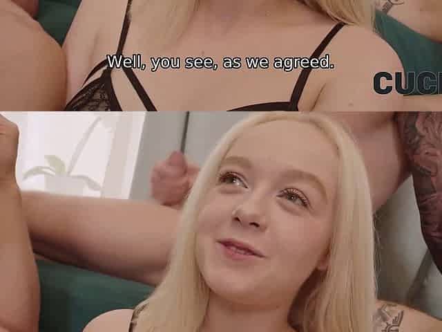 Sweet blonde college girl gets roughly double penetrated on the couch