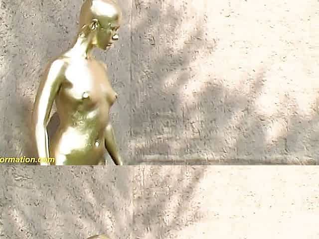 Real flexible contortionist gets golden painted