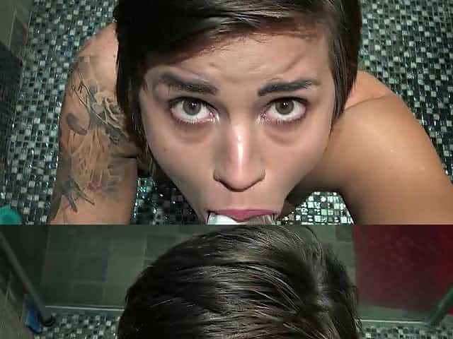 Quinn Wilde POV head with cum in mouth and sloppy deepthroating
