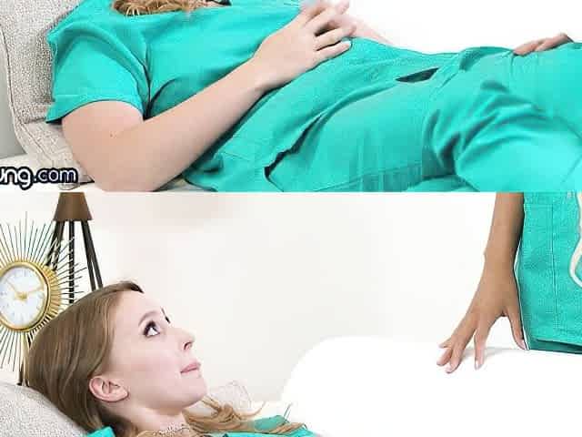 He puts her face down on the bed and cums in her pussy
