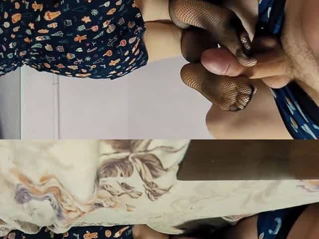 Footjob In Fishnet Tights
