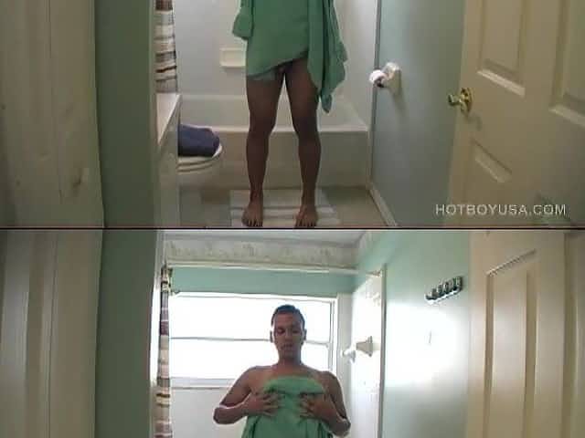 Amateur tattooed twink with a tan showers in classics porn