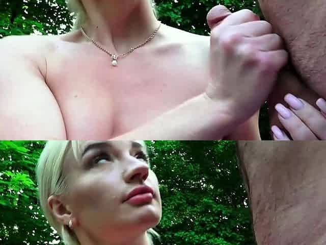 Russian babe gets a massage from grandpa in the park