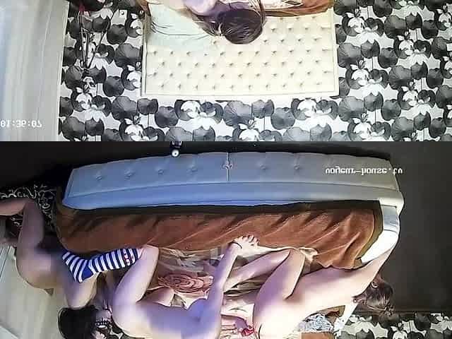 Real threesome porn at the shower and in bed with a mom and her daughter
