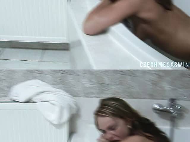 Hot babe watches her friend sucking her stepbrother's cock in the shower