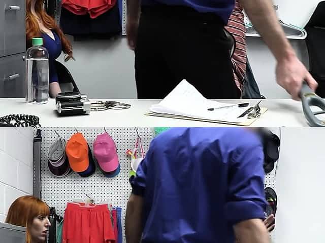 Security guy punishes shoplifting stepmom Kylie Kingston and her yummy stepdaughter