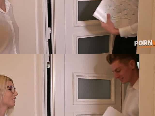 Amateur blonde teen stunner gobbles hard pov cock