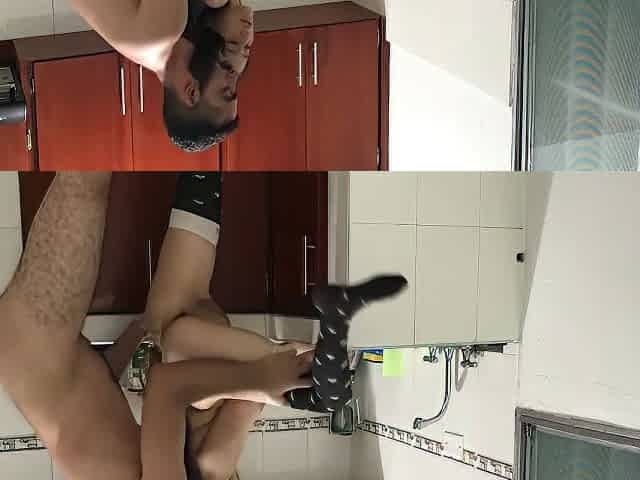 Steamy kitchen session with the sexy neighbor and her son-in-law