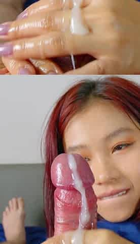 Stepsister nympho keeps me from working and plays with my cock until I cum in her hot hands