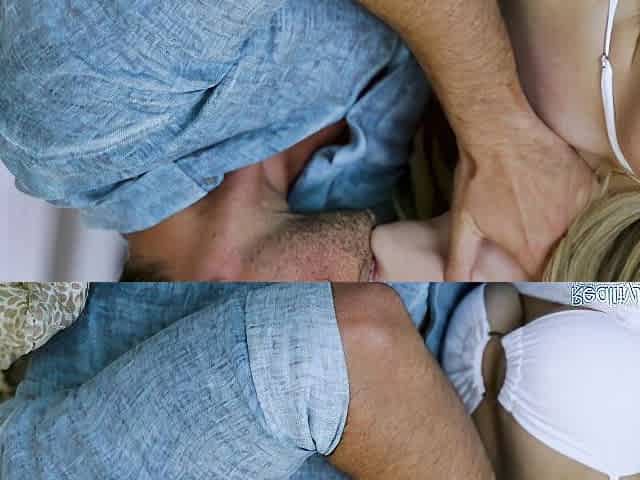 Sweet blonde hottie Nesty gives a passionate head for an old man