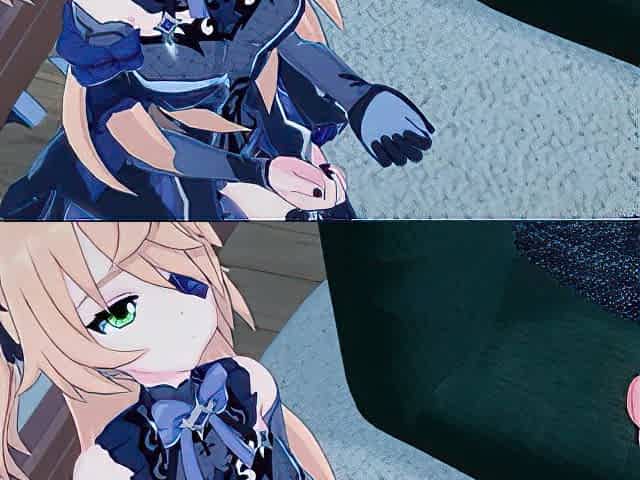 Fischl swallows a load of cum before getting side fucked.