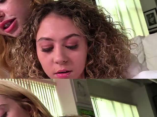 HJ teen duo enjoy hard cock in threesome masturbation